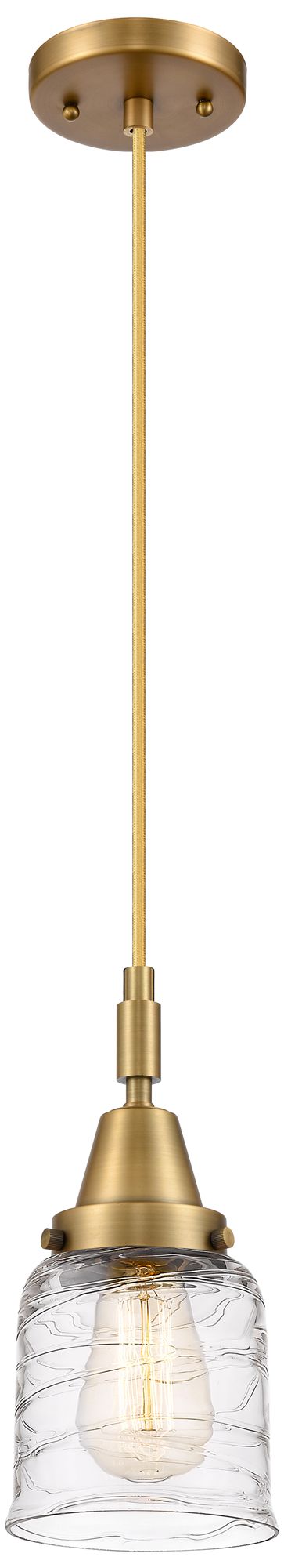 Downtown Caden Bell 5"W Cord Brass Mini Pendant w/ Clear Swirl Shade