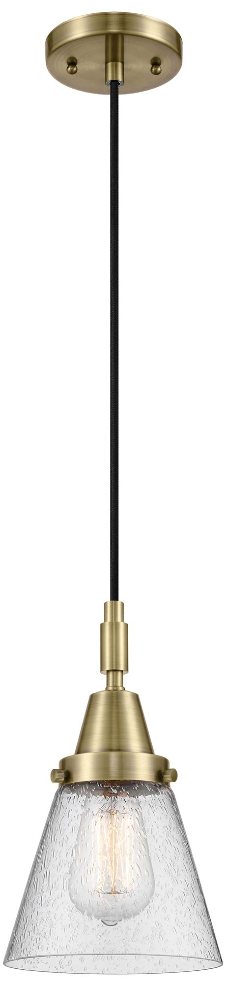 Downtown Caden Cone 6"W Cord Antique Brass Mini Pendant w/ Seedy Shade