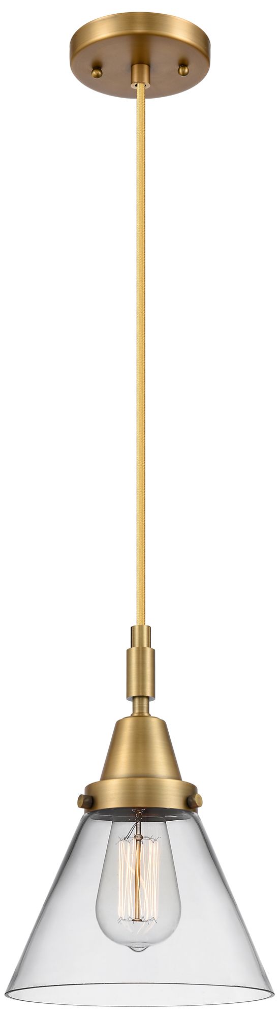Downtown Caden Cone 8"W Cord Brushed Brass Mini Pendant w/ Clear Shade