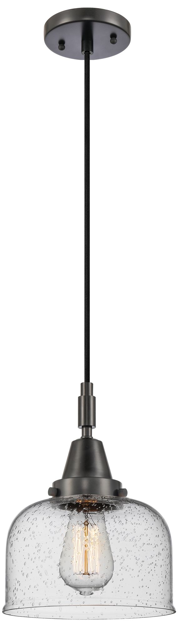 Downtown Caden Bell 8"W Cord Matte Black Mini Pendant w/ Seedy Shade
