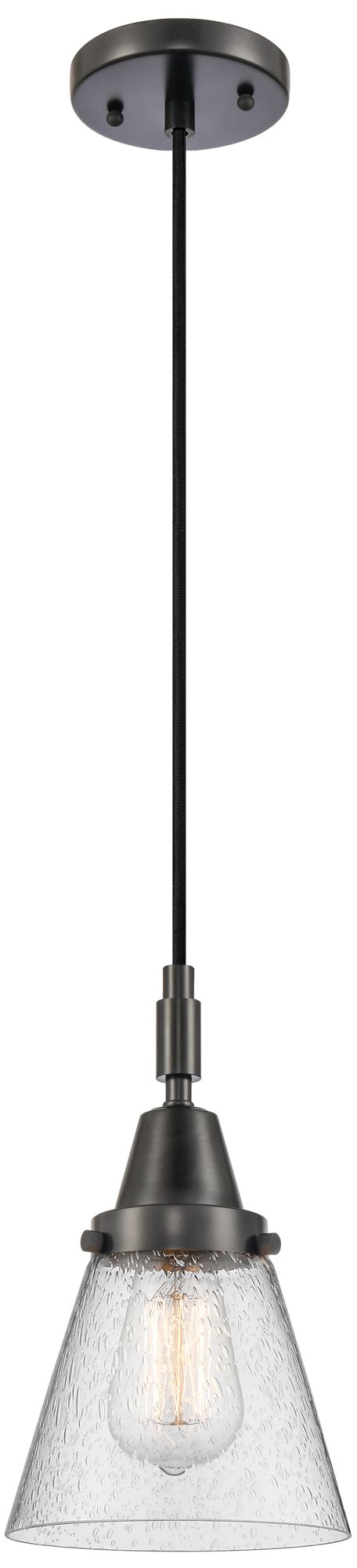 Edison Glass Cone 8" Oil Rubbed Bronze Corded Mini Pendant w/ Seedy Sh