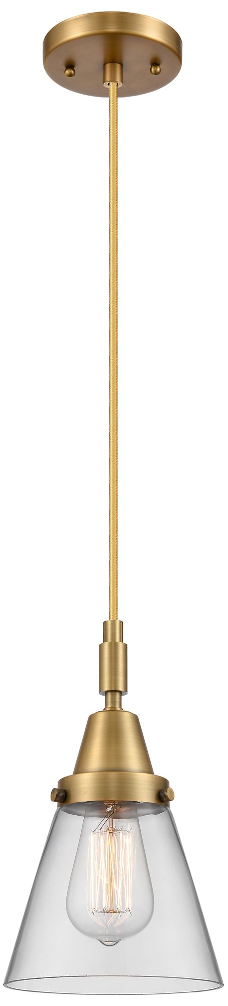 Downtown Caden Cone 6"W Cord Brushed Brass Mini Pendant w/ Clear Shade