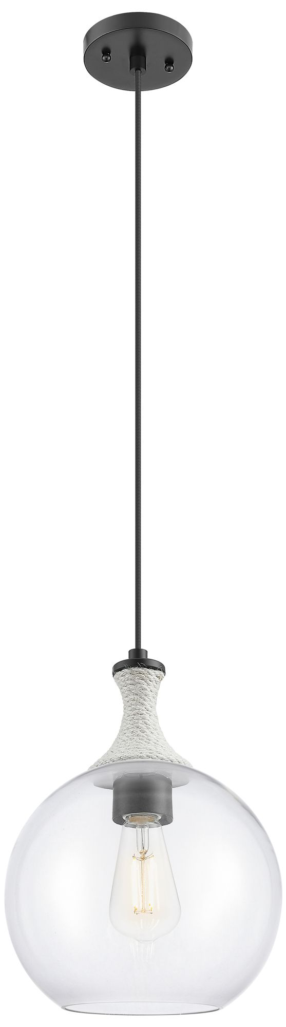 Downtown Astor 10"W White Rope Cord Black Mini Pendant w/ Clear Shade