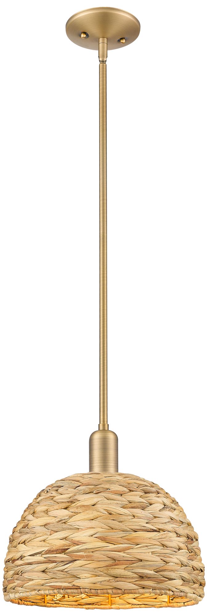 Arcadia Woven Rattan 12" Wide Brushed Brass Stem Hung Mini Pendant