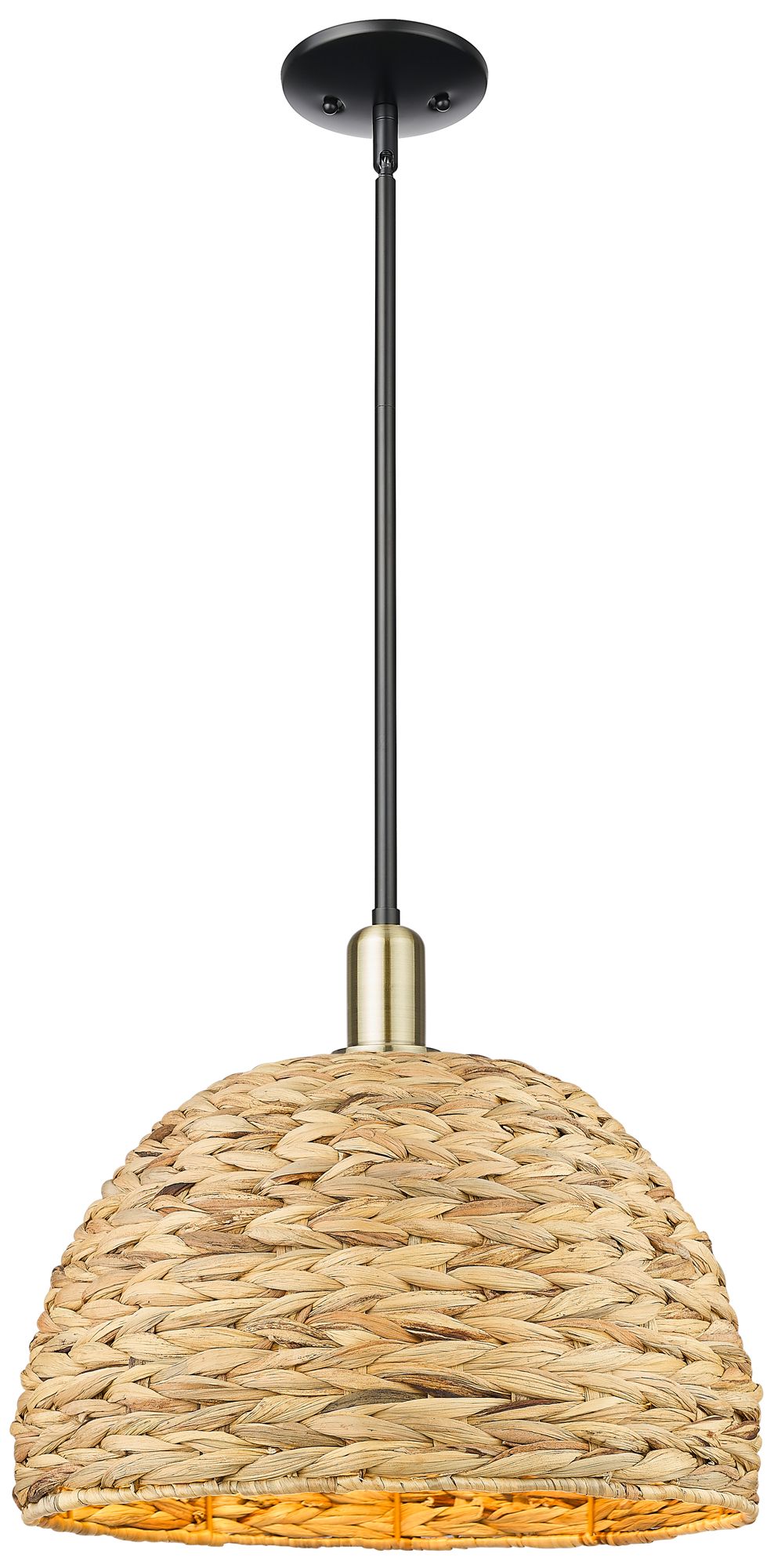 Arcadia Woven Rattan 16"W Black Antique Brass Stem Hung Mini Pendant