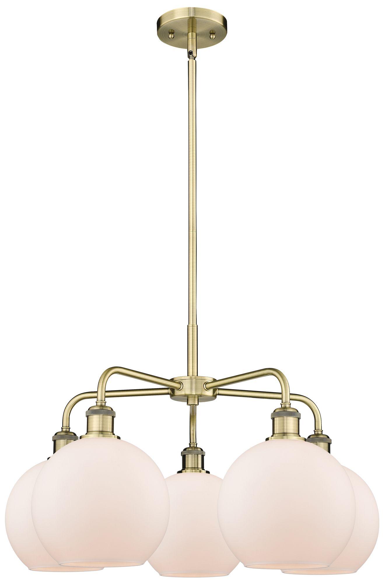 Athens 26"W 5 Light Antique Brass Stem Hung Chandelier With White Shad