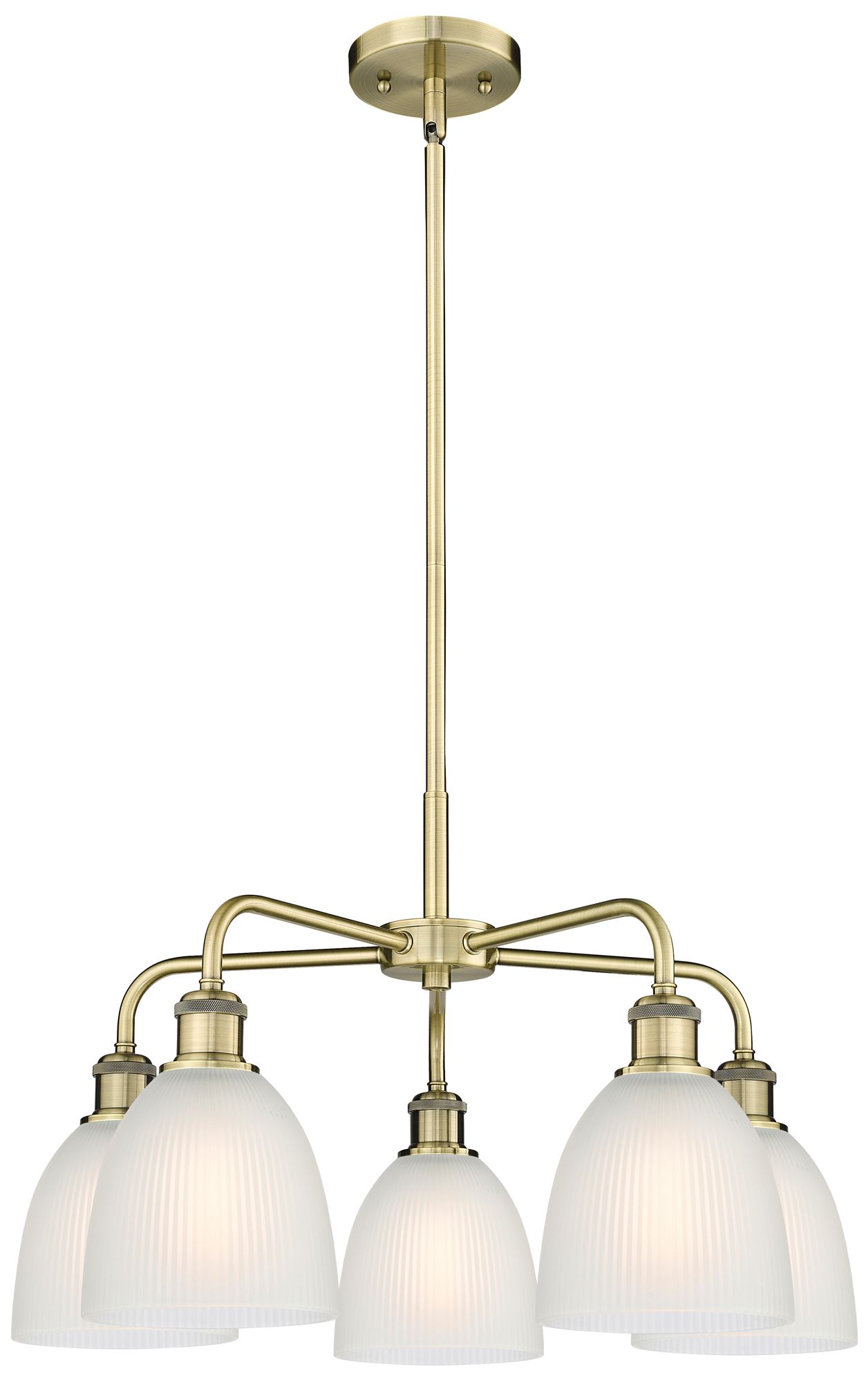 Castile 24"W 5 Light Antique Brass Stem Hung Chandelier With White Sha