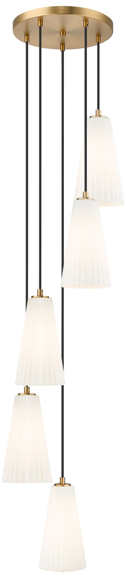 Athens 26"W 5 Light Brushed Brass Stem Hung Chandelier With White Shad