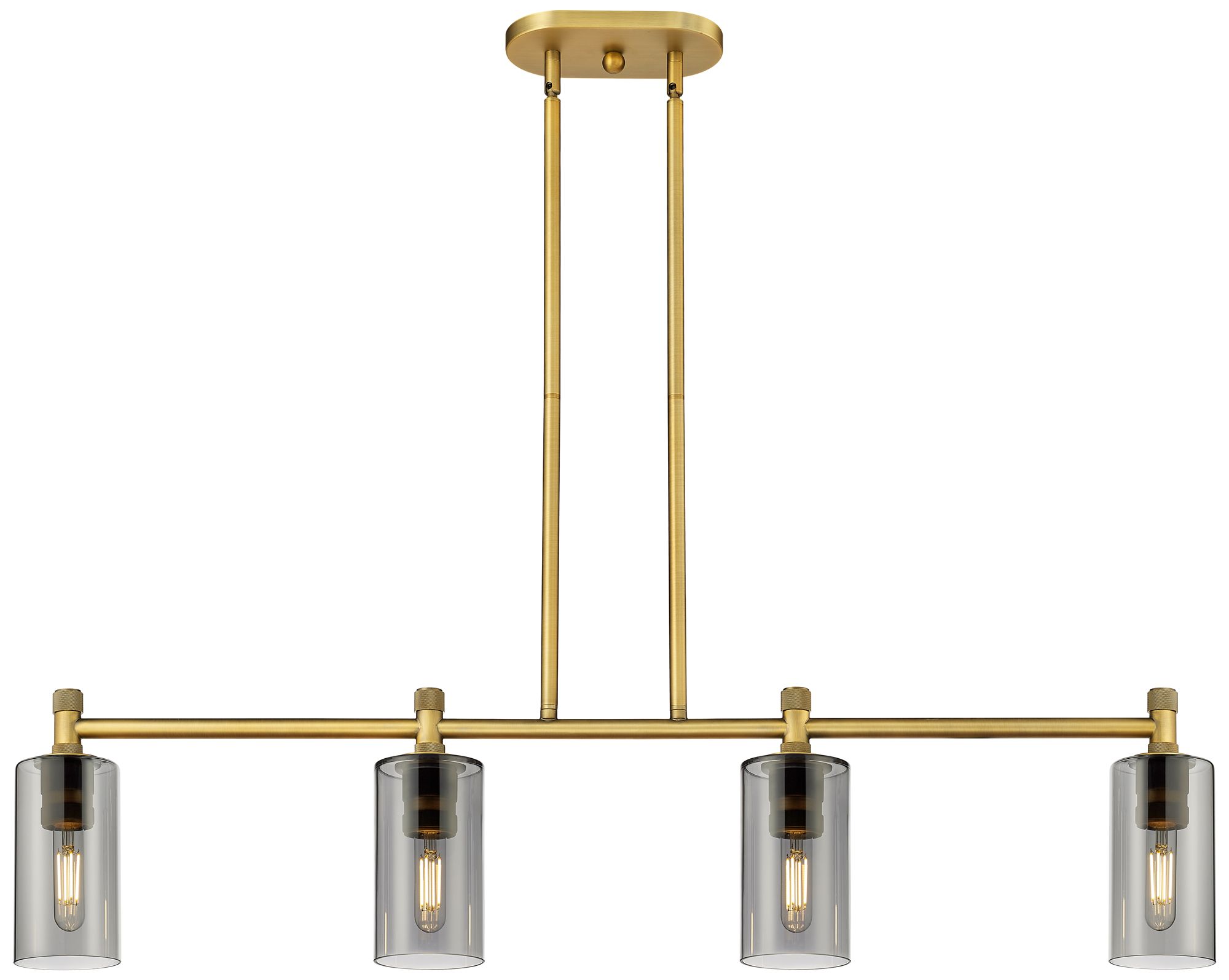 Crown Point 43.75"W 4 Light Brushed Brass Stem Island Light w/ Smoke S