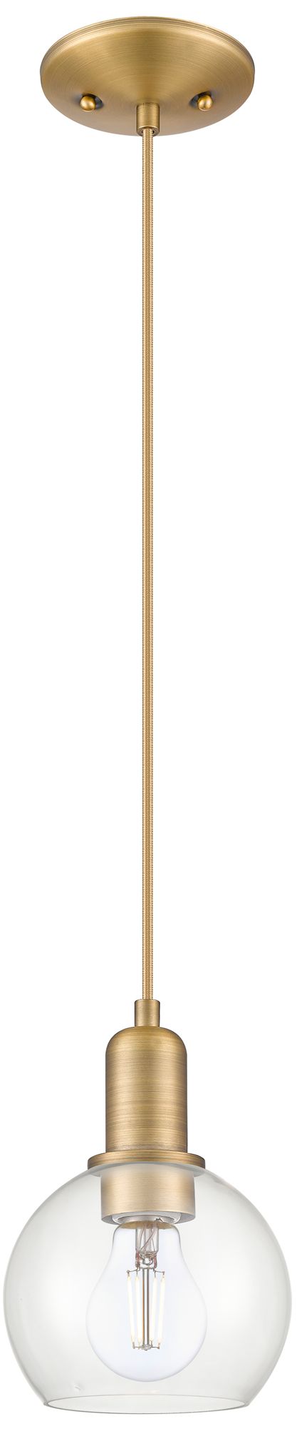 Arcadia Athens 6"W Brushed Brass Cord Hung Mini Pendant w/ Clear Shade
