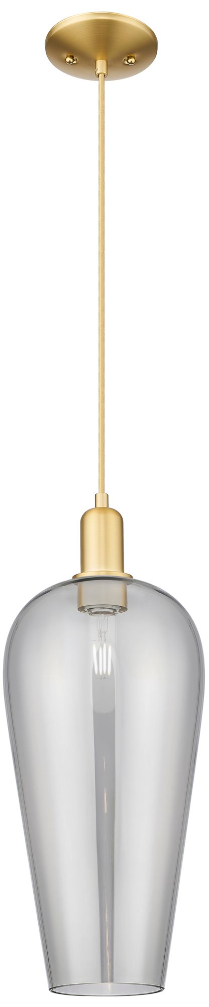 Chelsea 8"W Satin Gold Cord Hung Mini Pendant With Light Smoke Shade