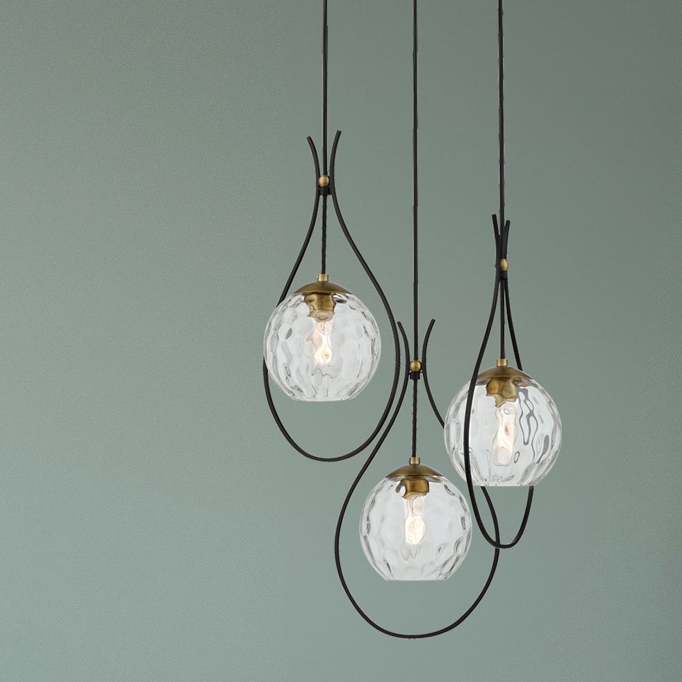Cody 19" Wide Coal and Soft Brass Multi-Light Pendant