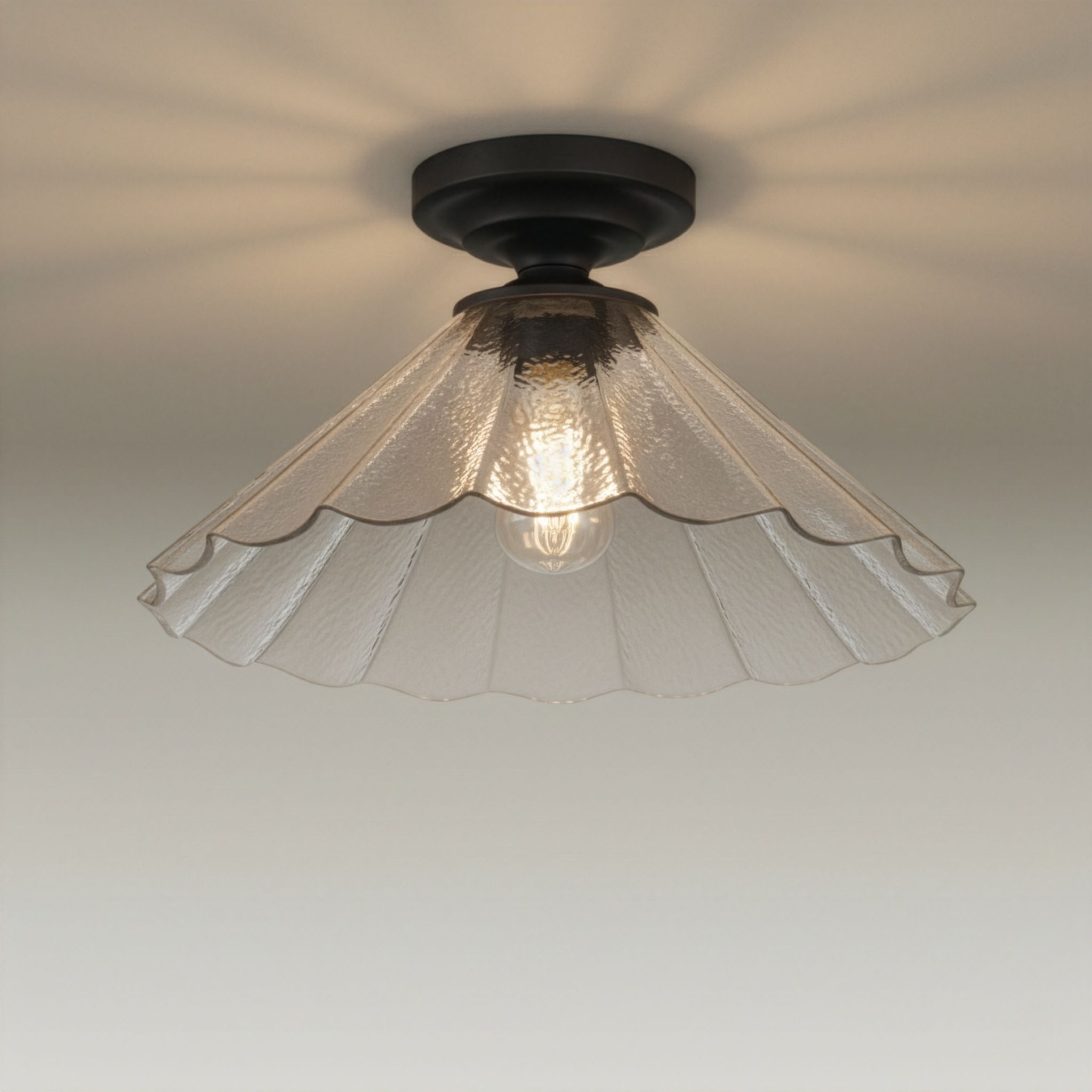 Possini Euro Vandross 16" Wide Matte Black Cast Glass Ceiling Light