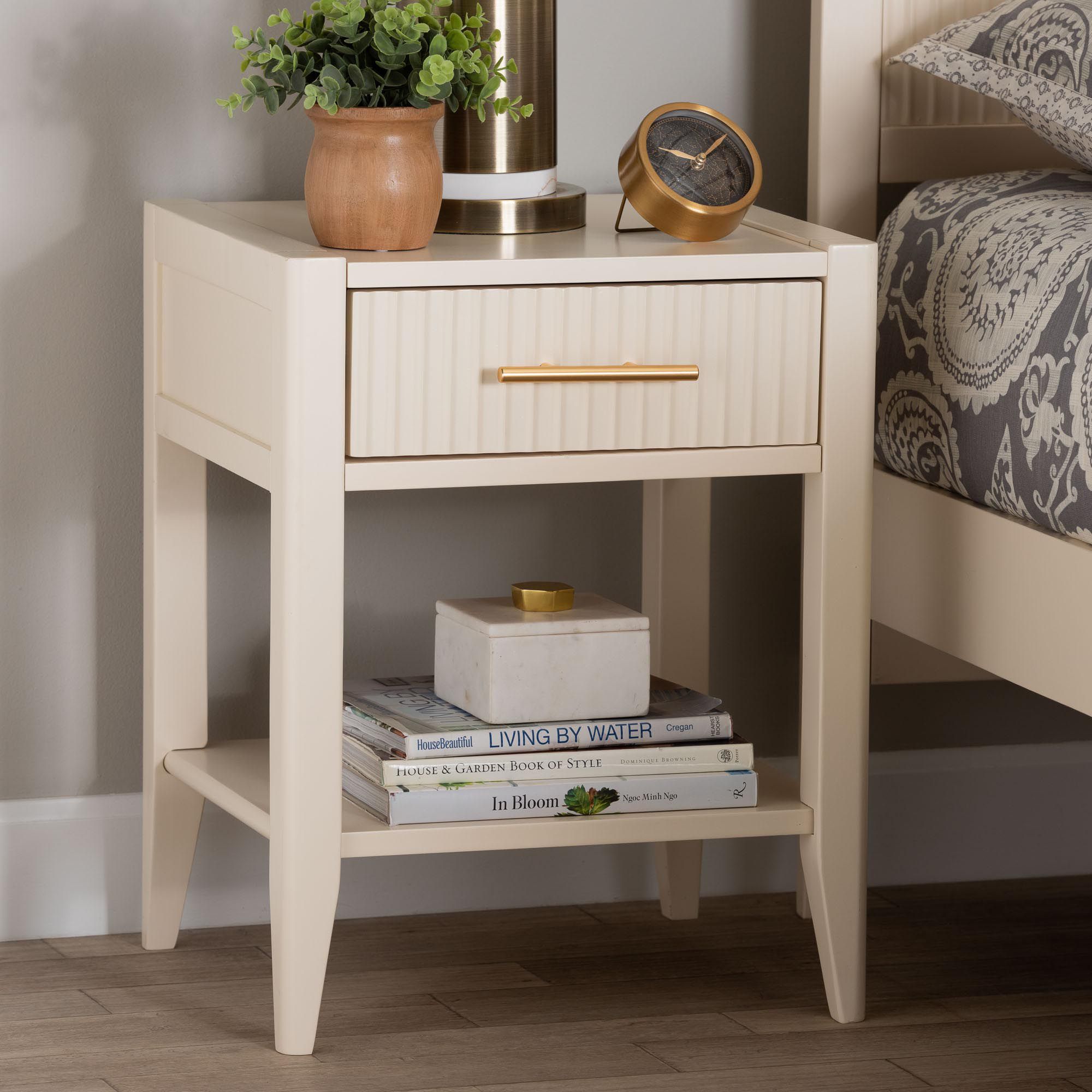 Baxton Studio Primrose Mid-Century Ivory Fluted Wood 1-Drawer Nightstand
