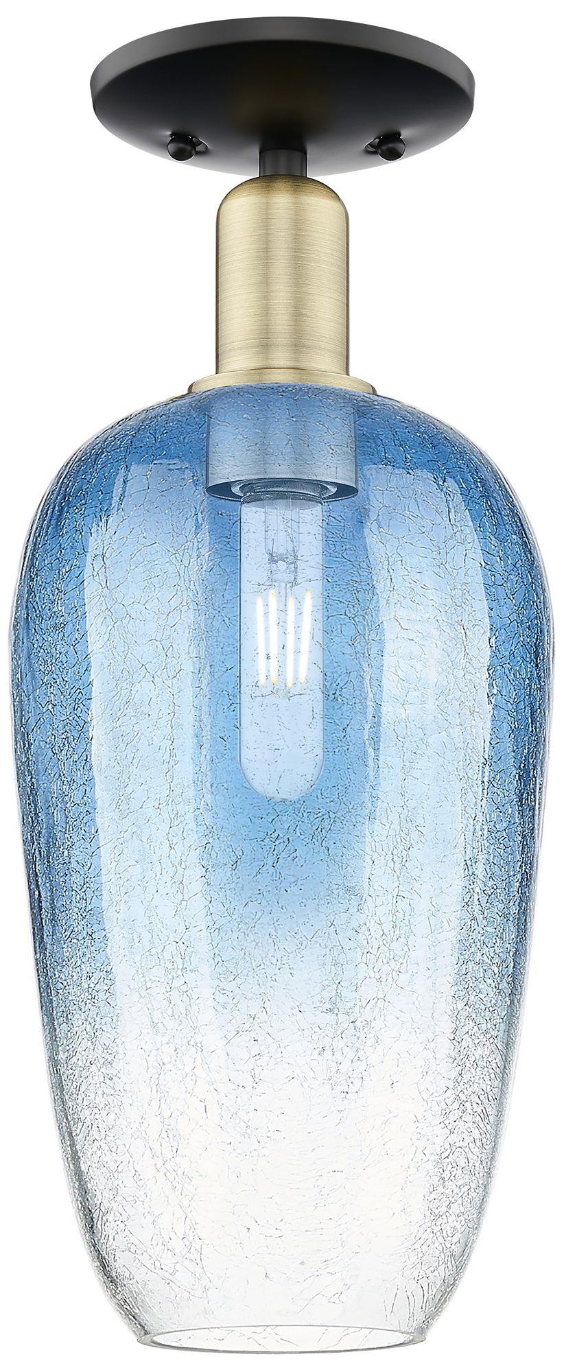 Brookhaven Flute 7"W Black Antique Brass Semi-Flush With Sapphire Shade