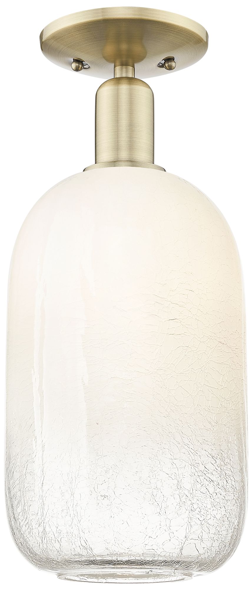Brookhaven Cloche 7"W Antique Brass Semi-Flush Mount With Opal Shade