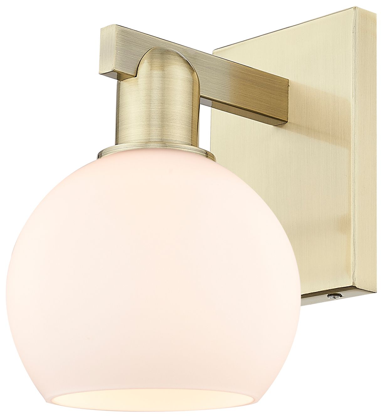 Arcadia Athens 10" High Antique Brass Sconce With Matte White Shade