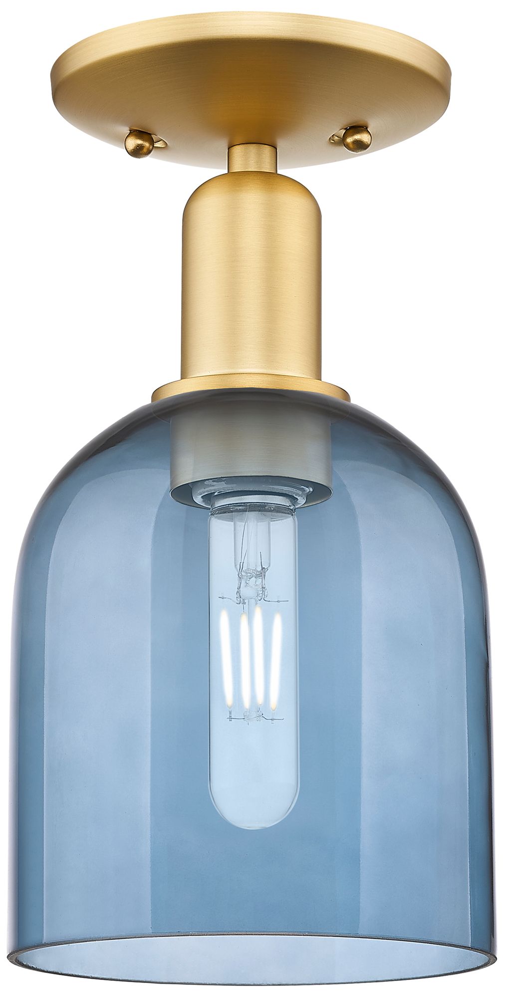 Arcadia Bella 6" Wide Satin Gold Semi.Flush Mount With Blue Shade