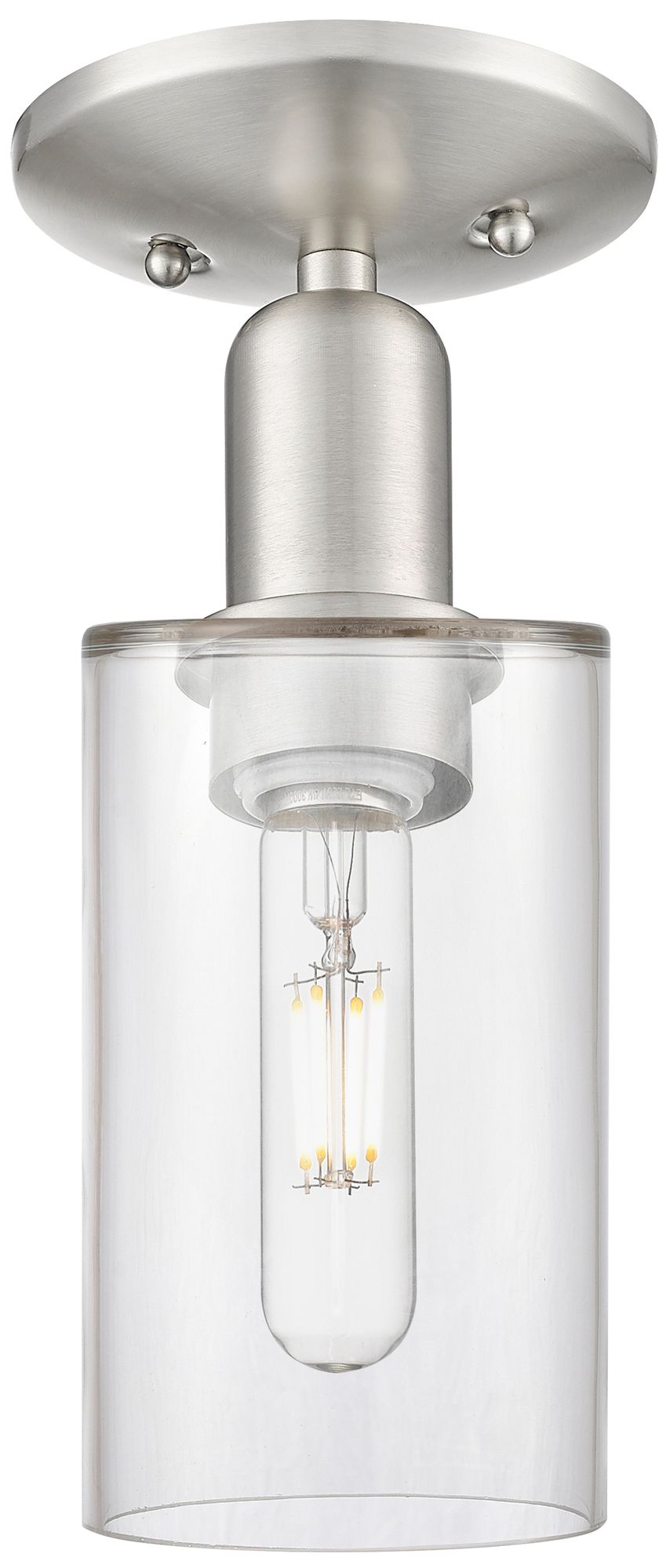 Arcadia Clymer 4"W Brushed Nickel Semi.Flush Mount With Clear Shade
