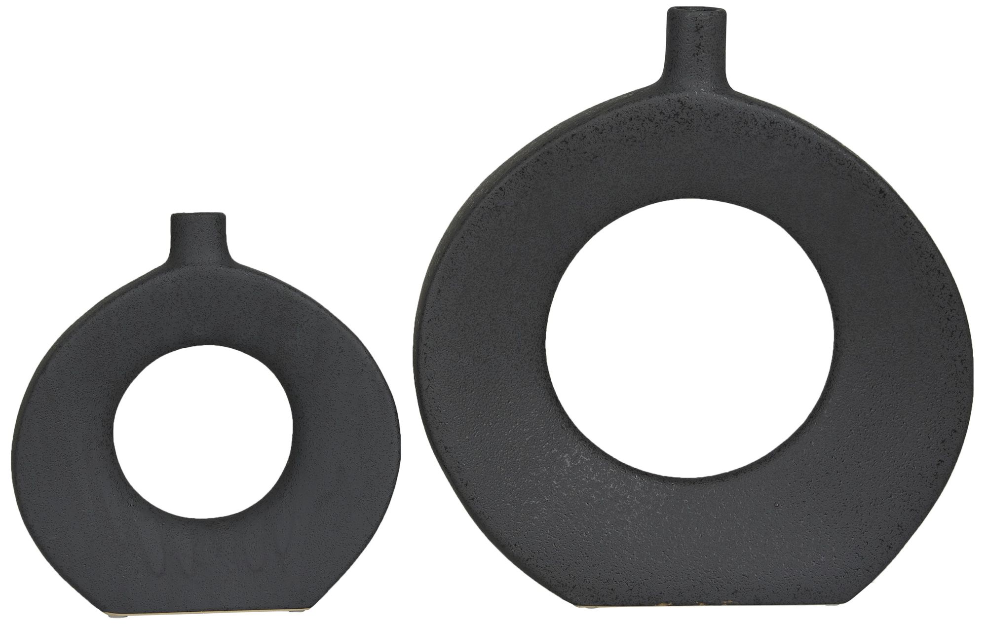 Black Ceramic Modern Vase, S/2 15", 10"H