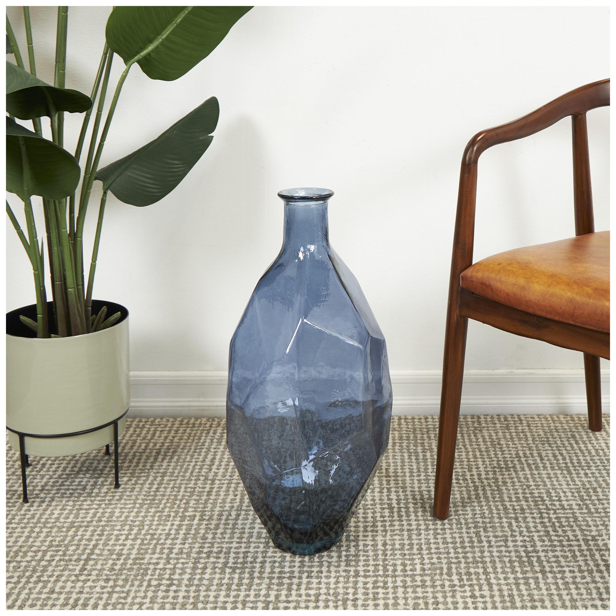 Blue Recycled Glass Modern Vase, 10" x 11" x 24"