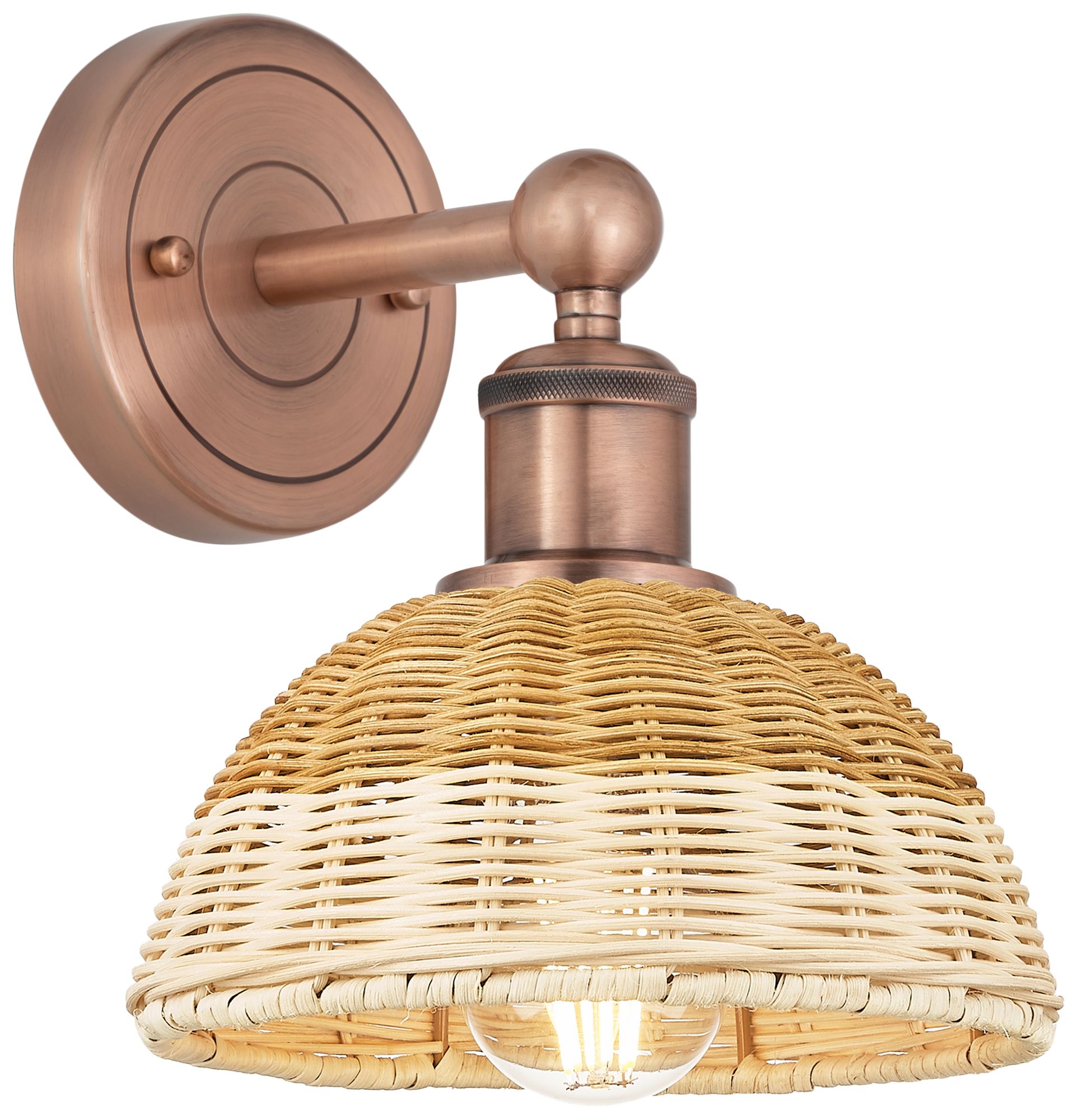 Bristol Natural II 12" High Antique Copper Sconce w/ Natural Shade