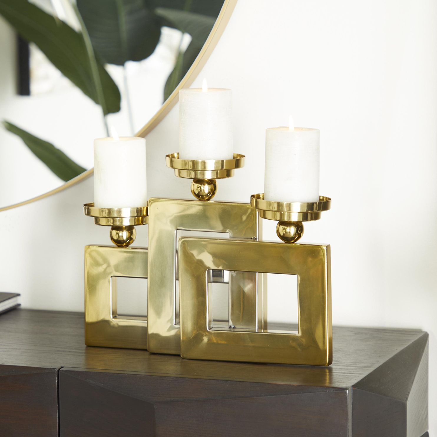 Gold Metal Industrial Candle Lantern, 8" x 8" x 16"