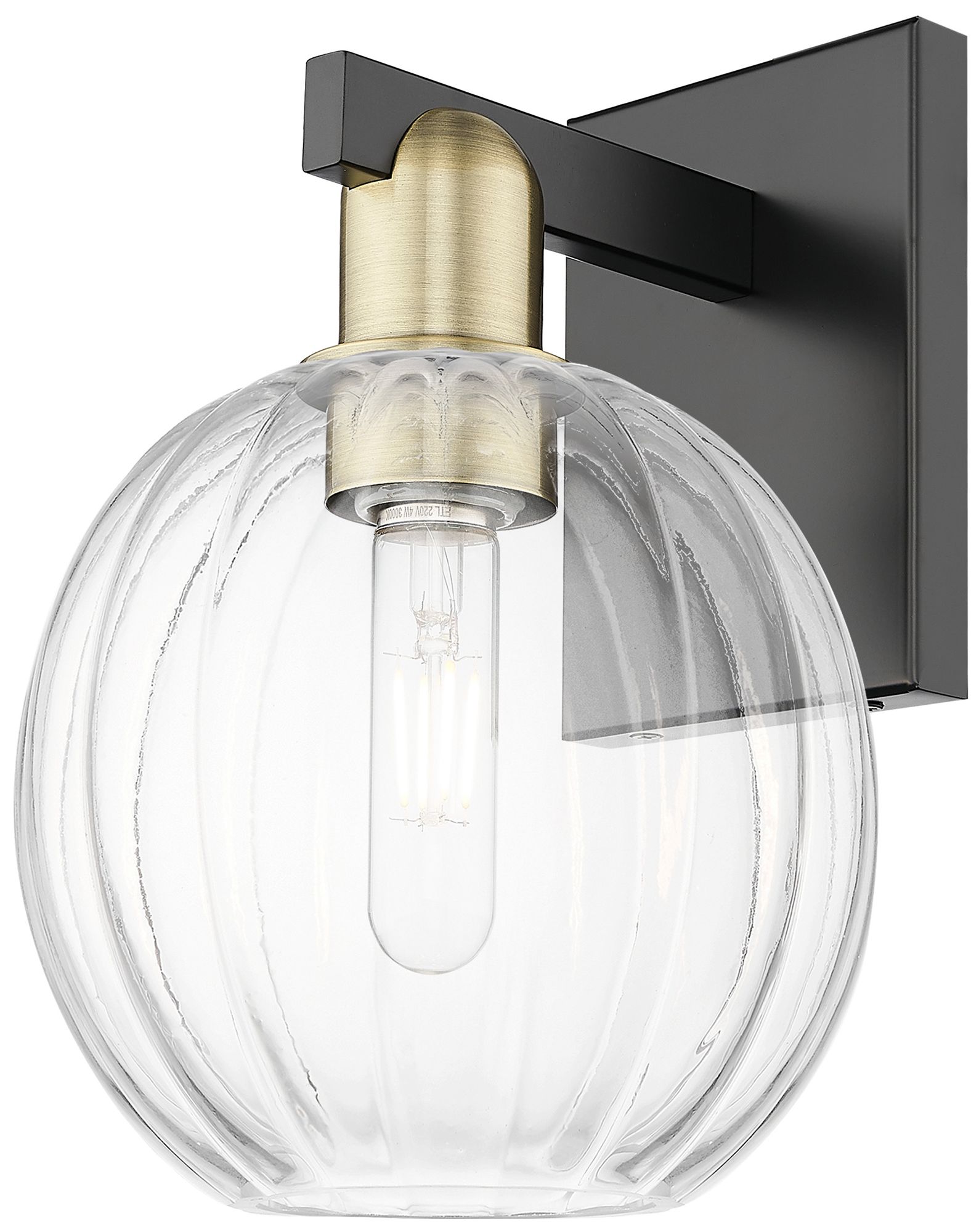 Preston 11.75"H Black Antique Brass Wall Sconce With Clear Globe Shade