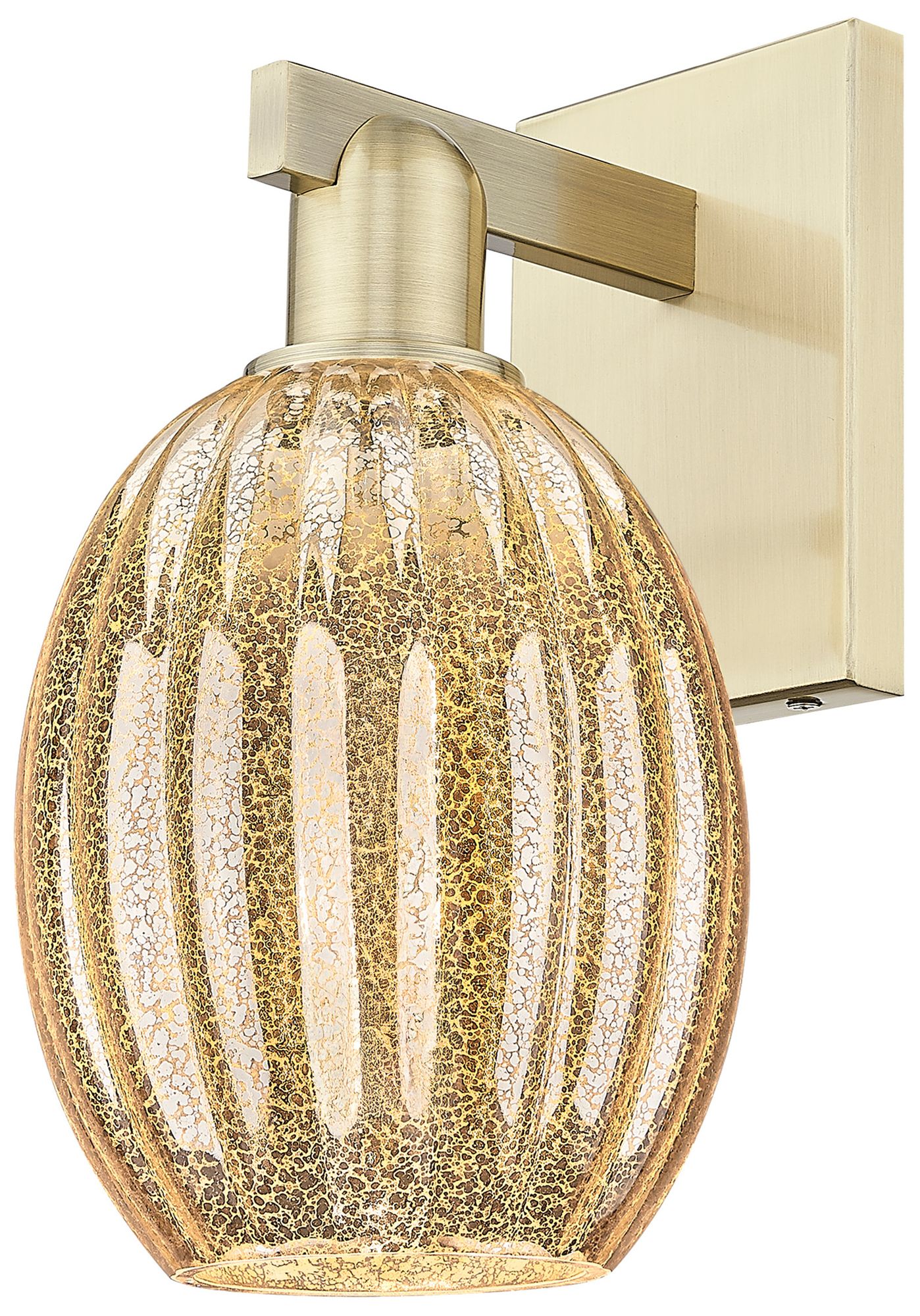 Preston 6" High Antique Brass Wall Sconce With Bell Mercury Shade