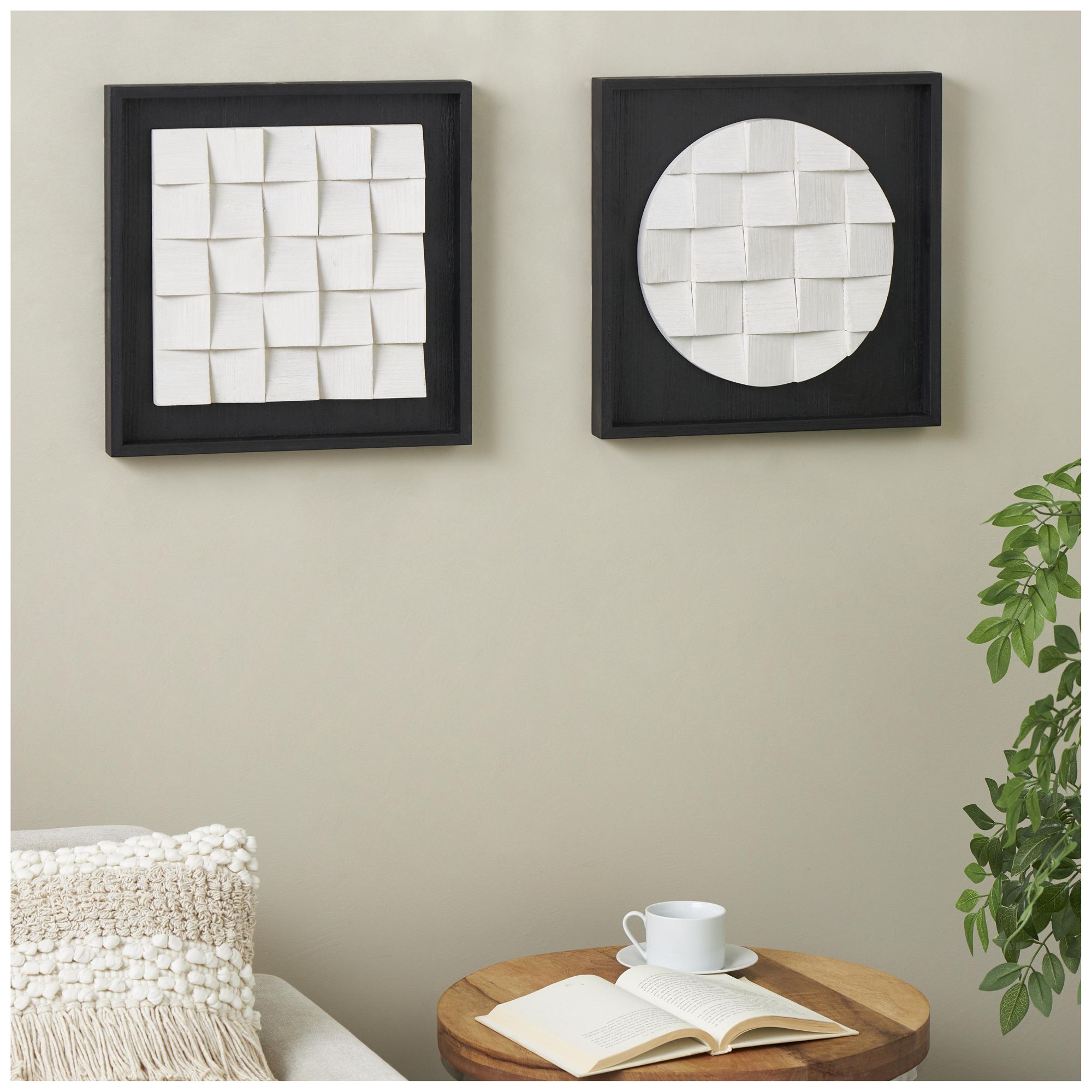White Wood Contemporary Wall Decor, S/2 16"W, 16"H