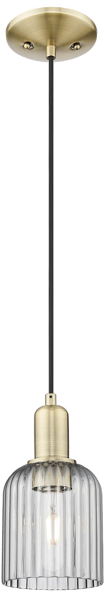 Bridal Veil 5"W Antique Brass Cord Mini Pendant With Light Smoke Shade