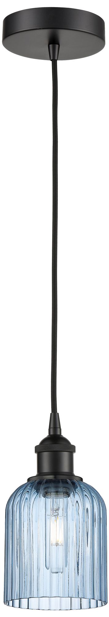 Crown Point 3.88"W Matte Black Cord Hung Pendant With Plated Smoke Sha