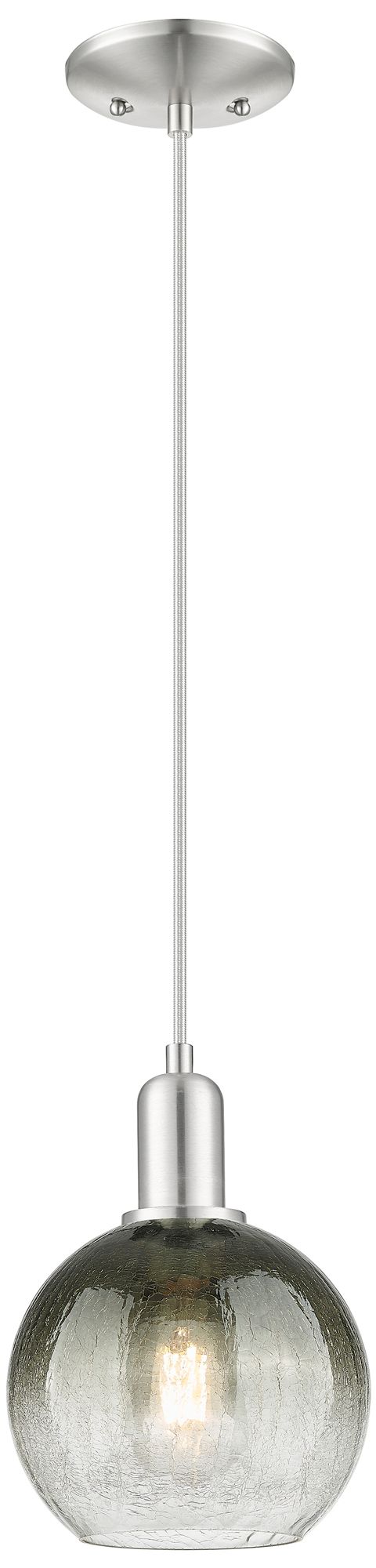 Downtown Brookhaven Globe 8"W Cord Satin Nickel Pendant w/ Slate Shade
