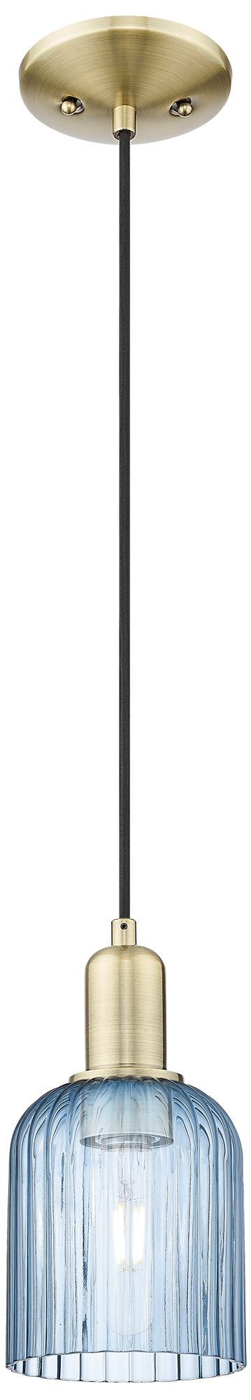 Bridal Veil 5"W Antique Brass Cord Hung Mini Pendant With Blue Shade