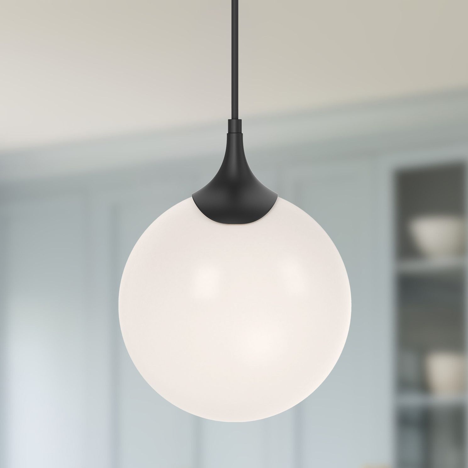 Alora Mood Nouveau E26 8-in Matte Black/Opal Matte Glass Pendant