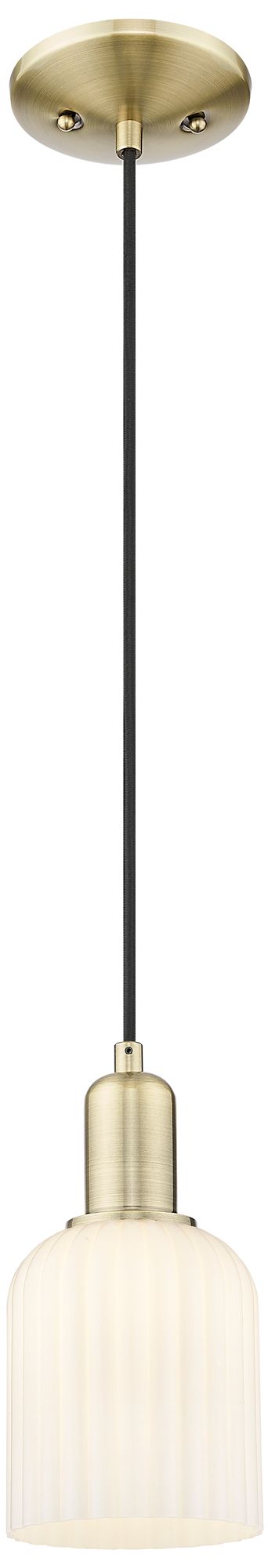 Bridal Veil 5"W Antique Brass Cord Mini Pendant With Gloss White Shade