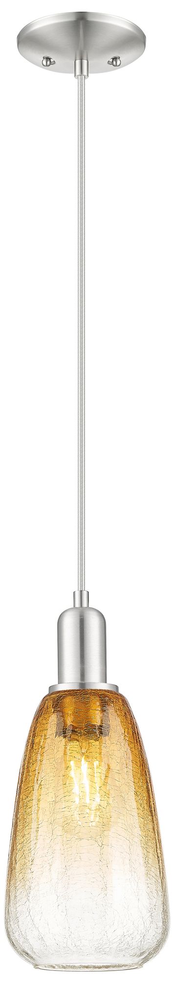 Downtown Brookhaven Almond 6"W Cord Satin Nickel Pendant w/ Amber Shade