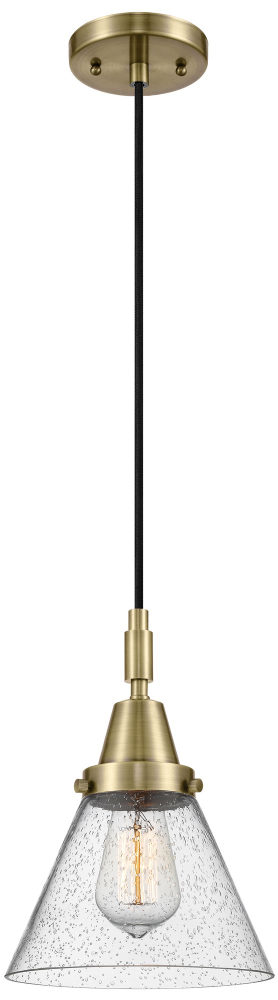 Downtown Caden Cone 8"W Cord Antique Brass Mini Pendant w/ Seedy Shade