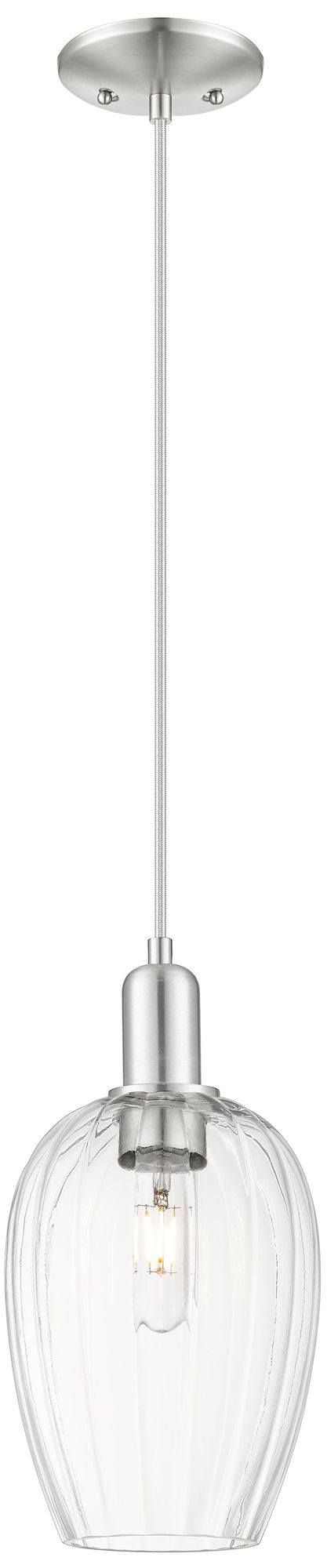 Downtown Preston 6"W Cord Satin Nickel Pendant w/ Clear Flute Shade