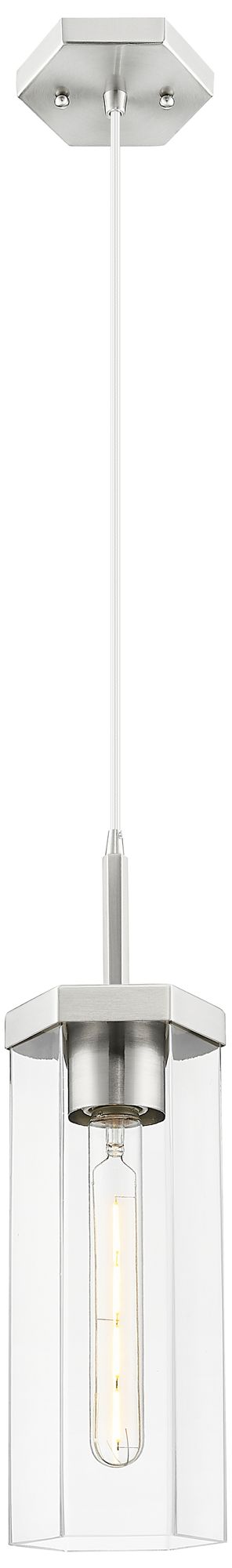 Edison Athens 8" Brushed Satin Nickel Cord Hung Mini Pendant w/ Clear