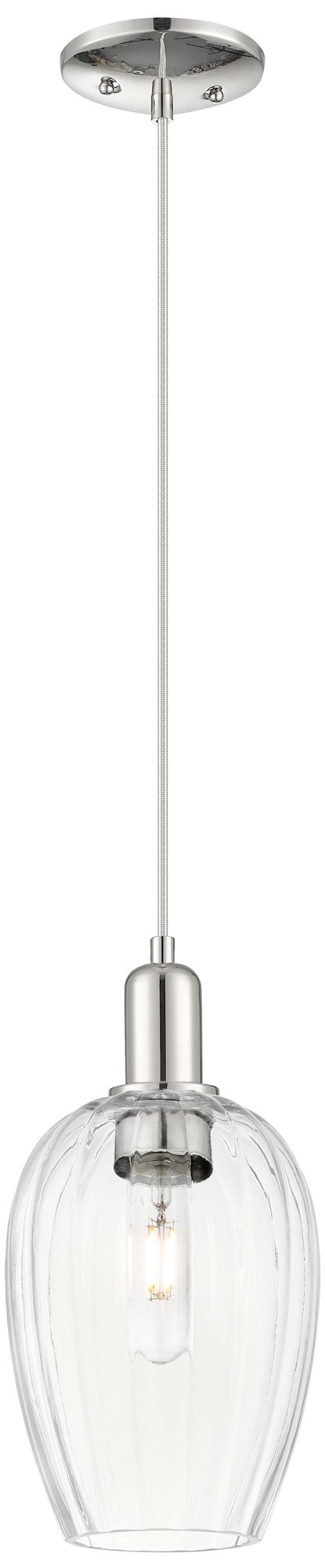Downtown Preston 6"W Cord Nickel Mini Pendant w/ Clear Flute Shade