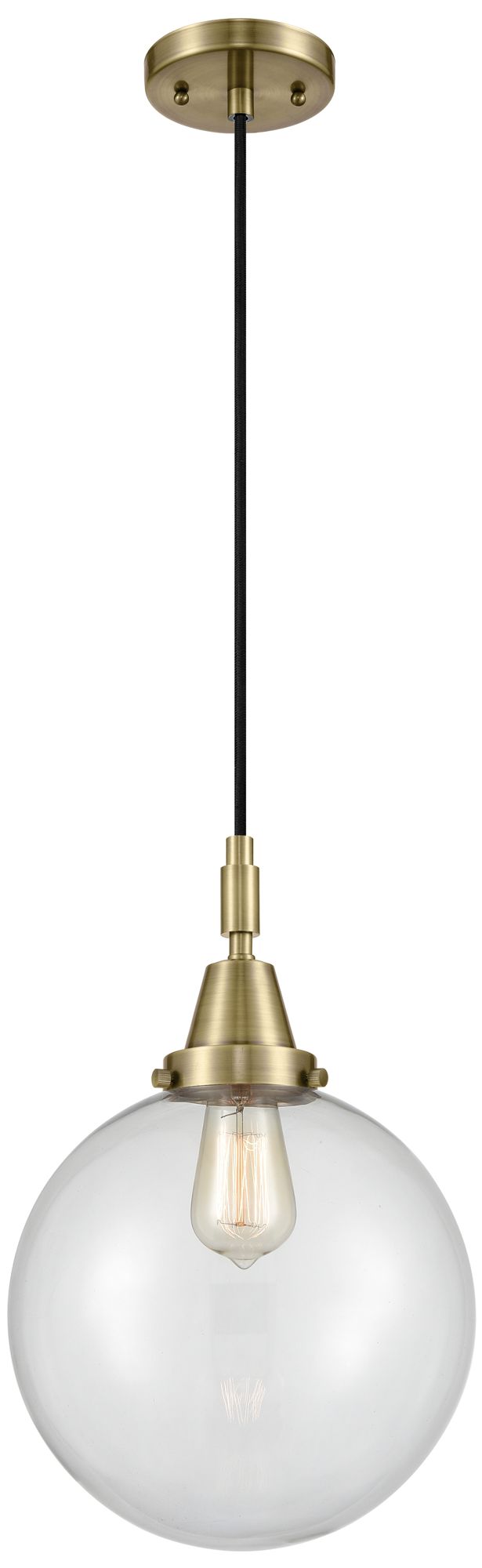 Downtown Caden Beacon 10"W Cord Antique Brass Pendant w/ Clear Shade