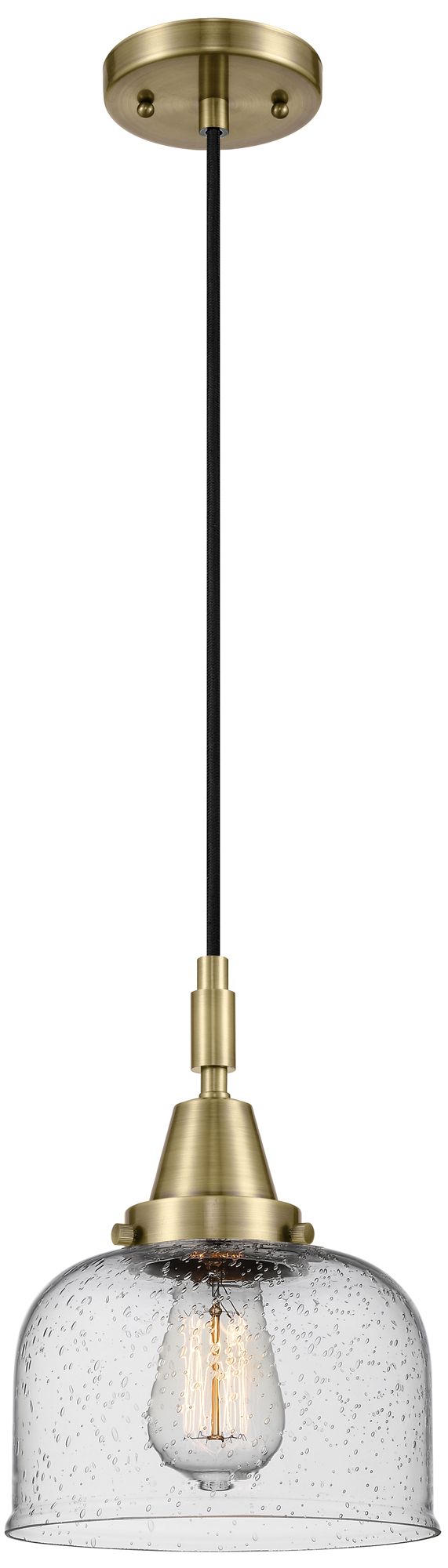 Downtown Caden Bell 8"W Cord Antique Brass Mini Pendant w/ Seedy Shade