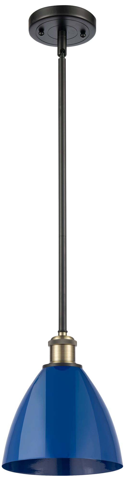 Plymouth Dome 7.5" Wide Black Brass Stem Hung Pendant w/ Blue Shade