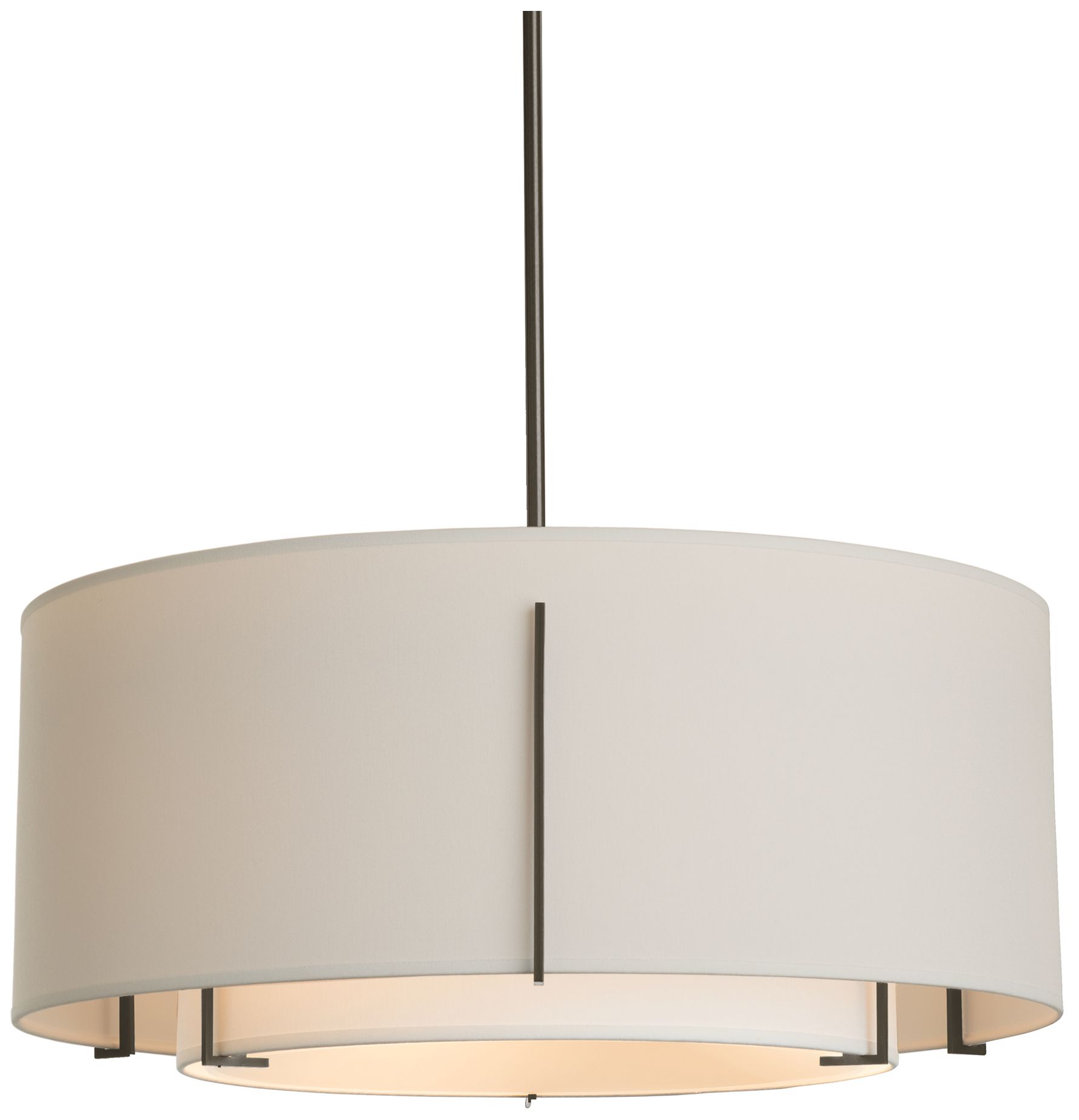 Exos 23" Wide Bronze Pendant With Double Natural Anna & Flax Shade