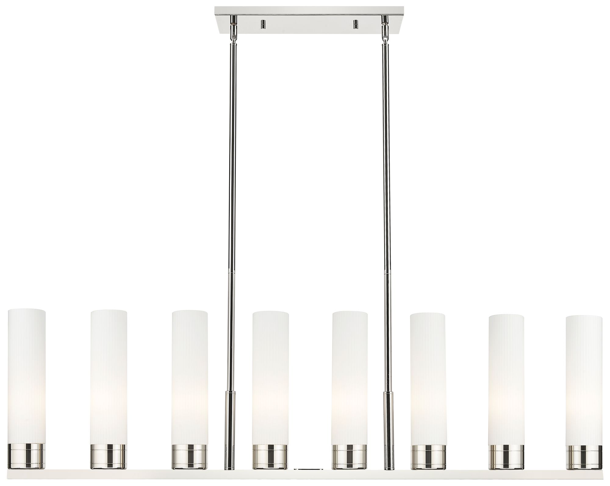 Boreas 48"W 6-Lt Nickel Stem Island-Lt w/ 11" Striped White Shade