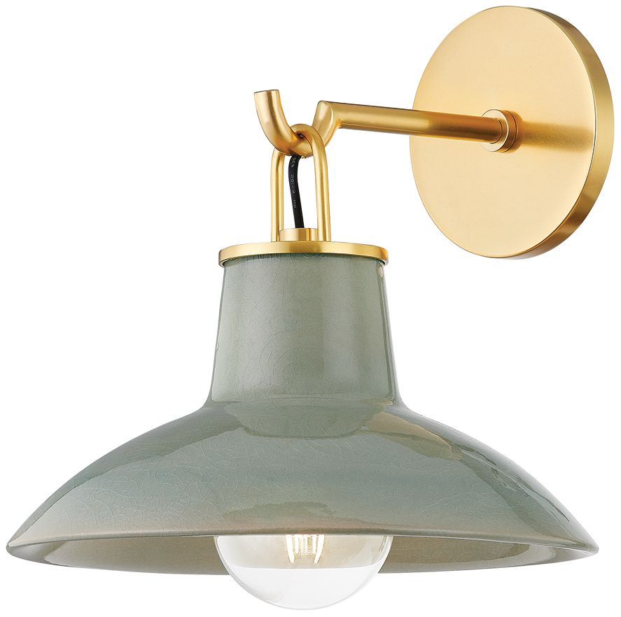 Hudson Valley Pottersville Wall Sconce 10.5 In. In Aged Brass/Ceramic Moss