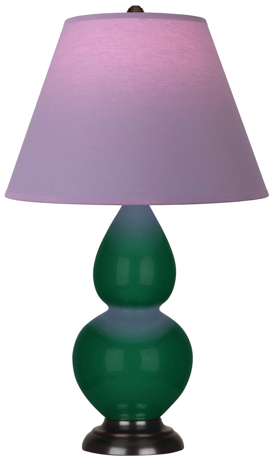Double Gourd 23"H Peacock And Bronze Lamp w/ Plum And Lavender Shade