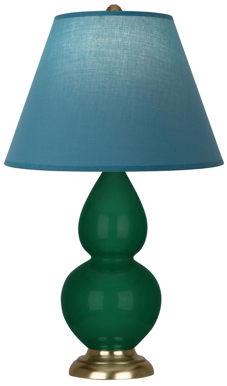 Double Gourd 22.75"H Ash And Brass Lamp w/ Bright Blue And Gray Shade