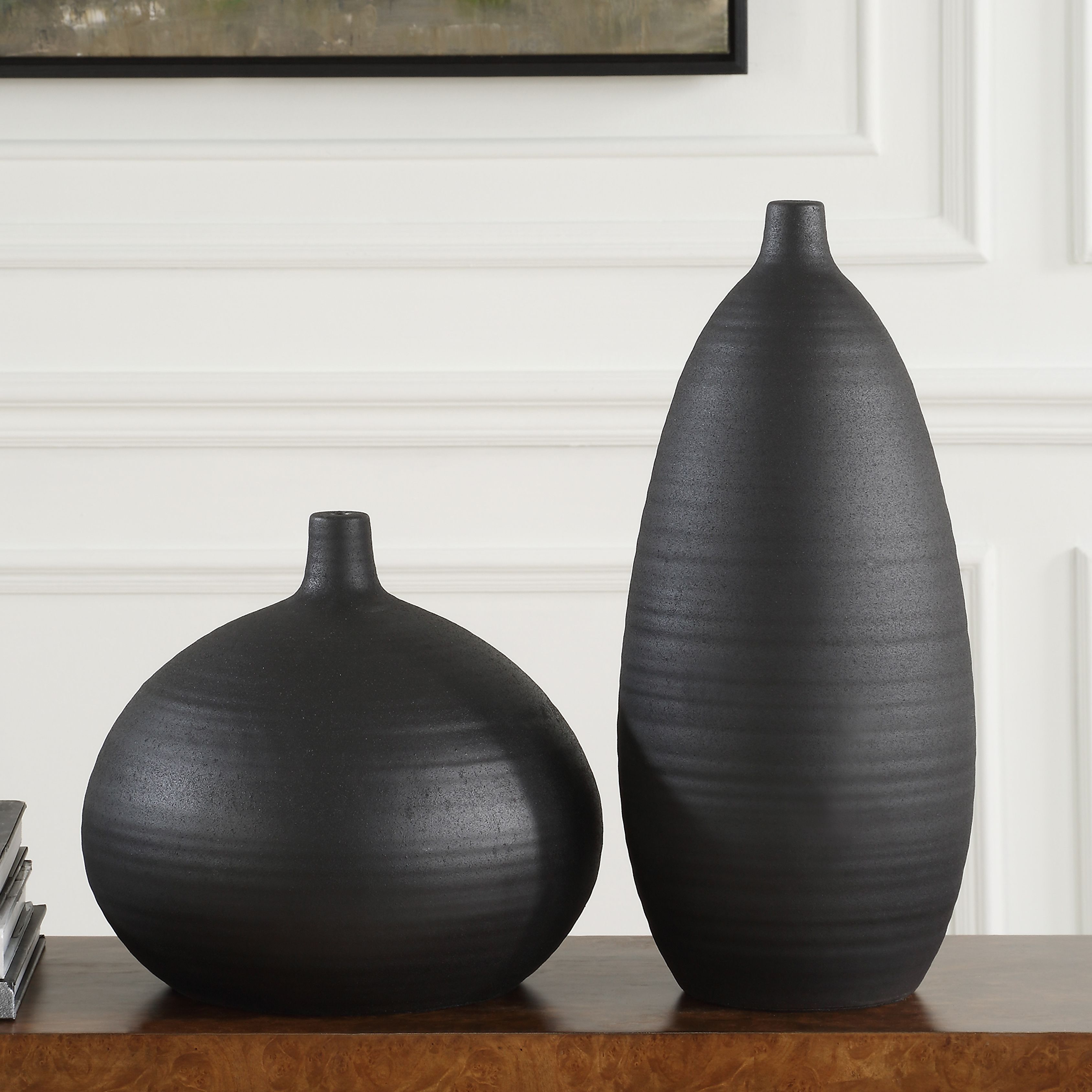 Uttermost Bower Matte Black 2-Piece Porcelain Vases